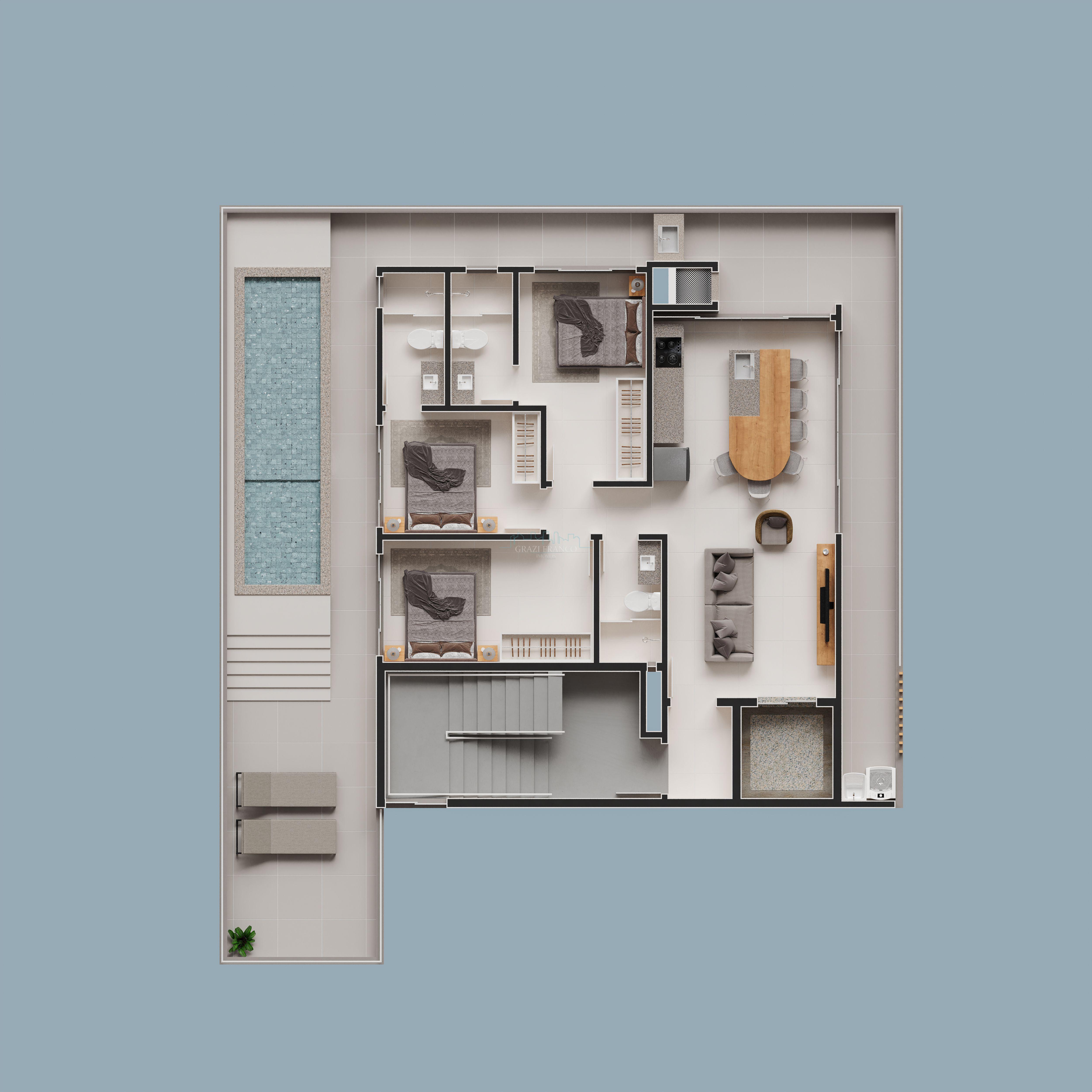- Terraço privativo com Piscina