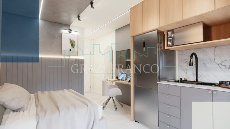 - Studios compactos e funcionais, com metragens que variam de 28,00m² a 42,00m²;