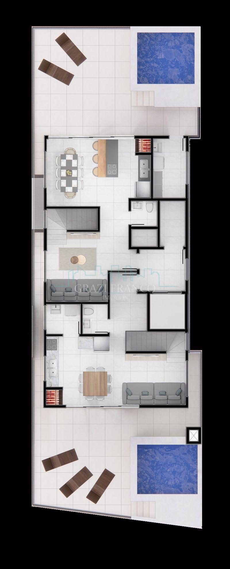 Cobertura frente - Com área privativa de 195,11 m² e área total de 294,75 m²