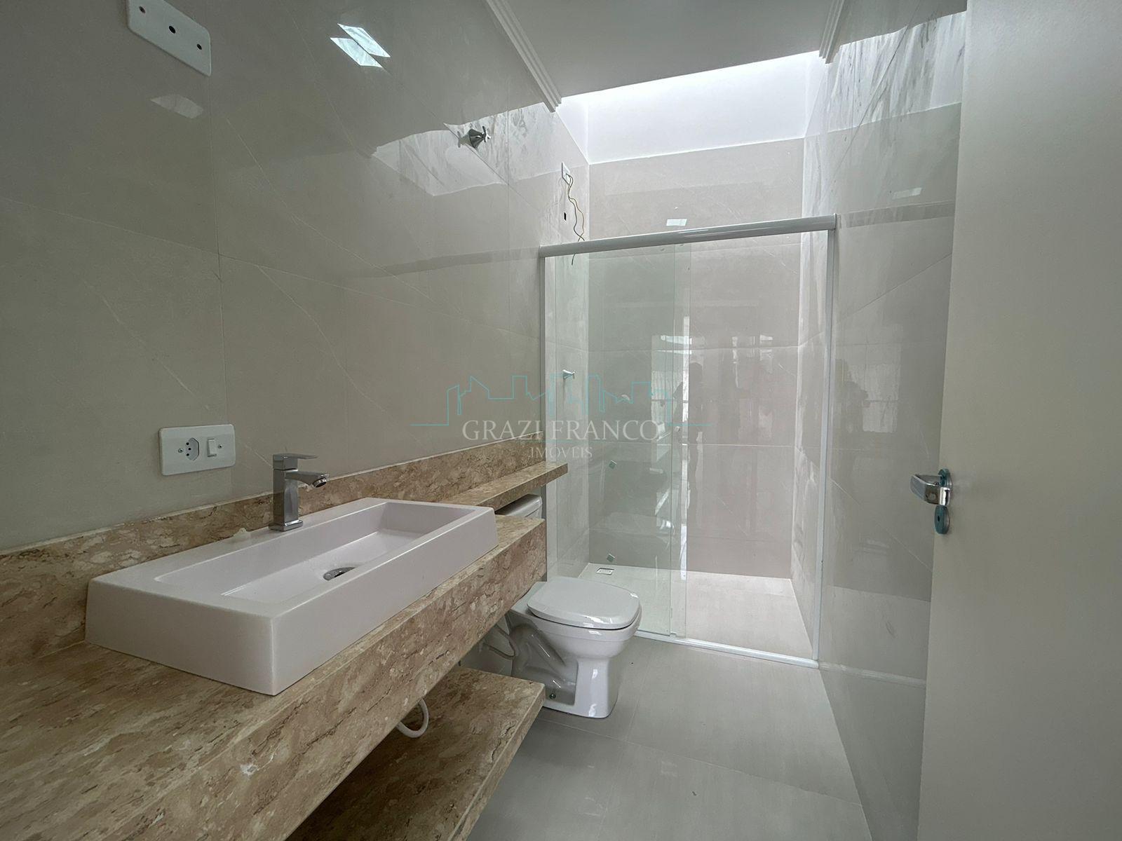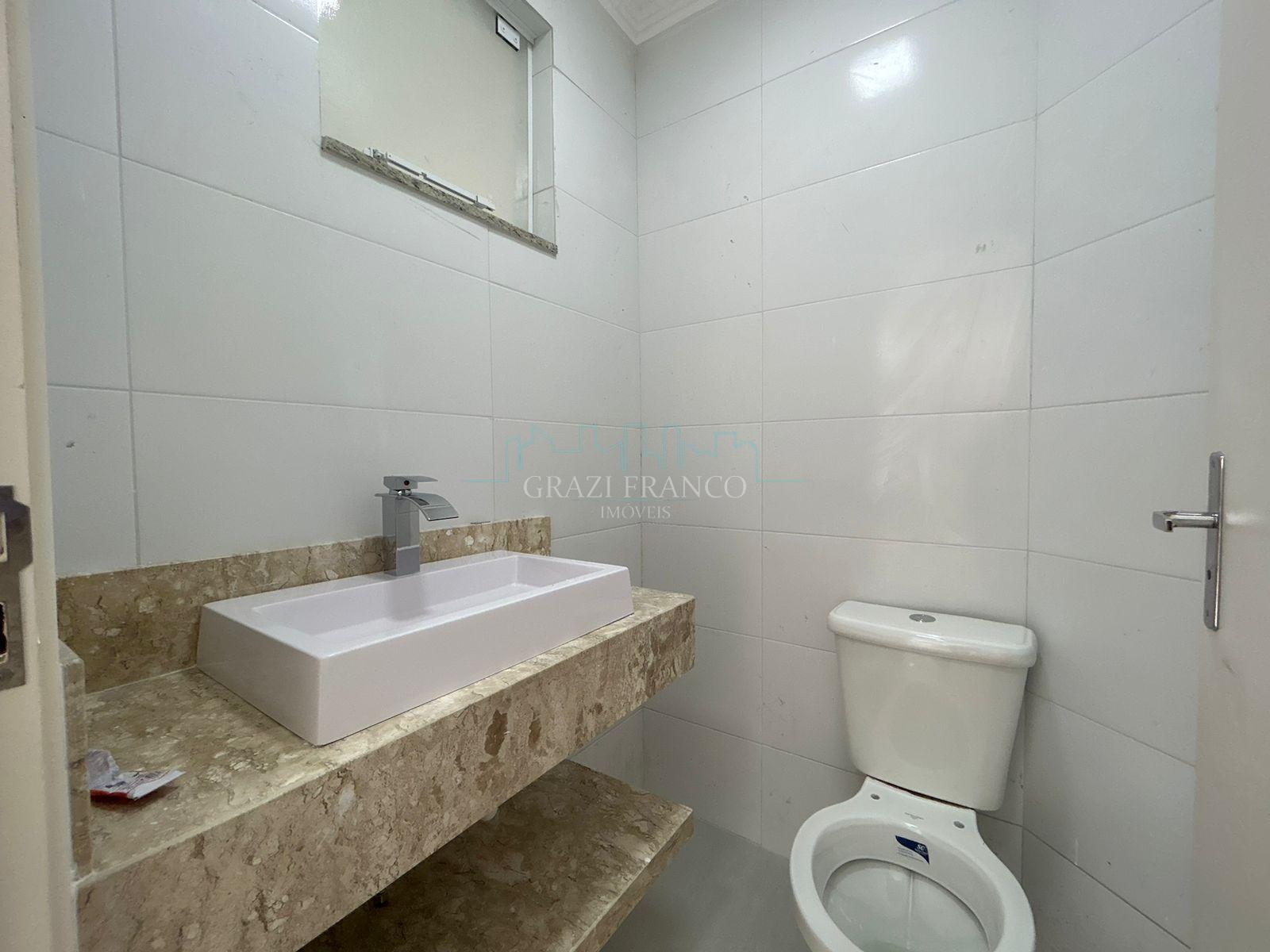 - Bwc com bancada em pedra Travertino e pia sobreposta