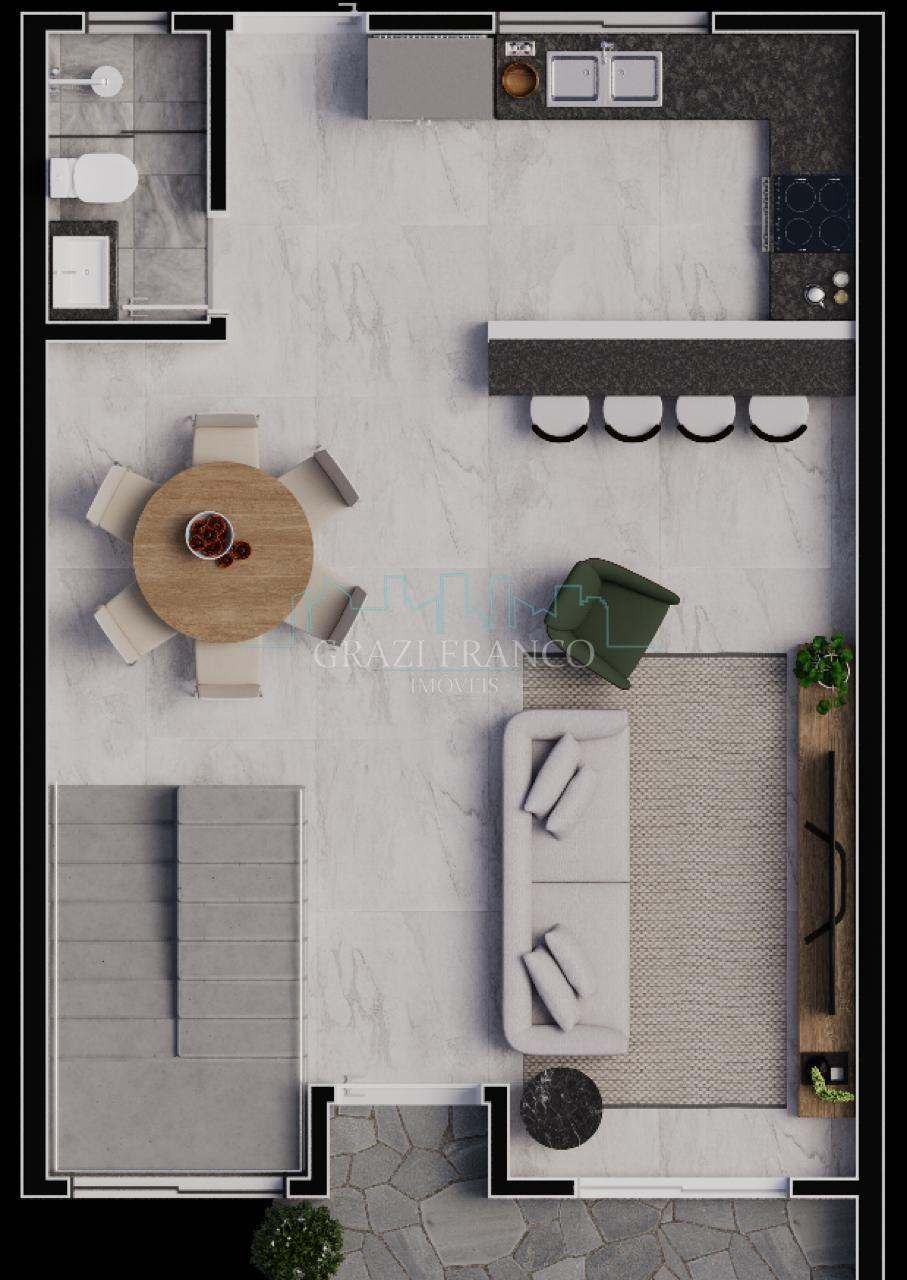 - Sala de estar e de jantar integradas com a cozinha