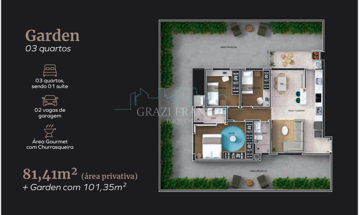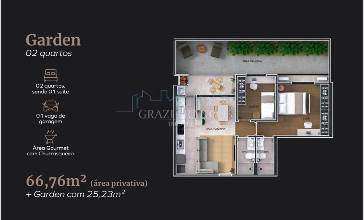 - Garden unidade 103 - medindo: 66,76m² - área privativa 91,99m² área total - R$ 745.000,00 (1 vaga)