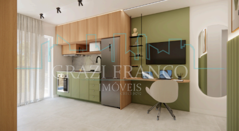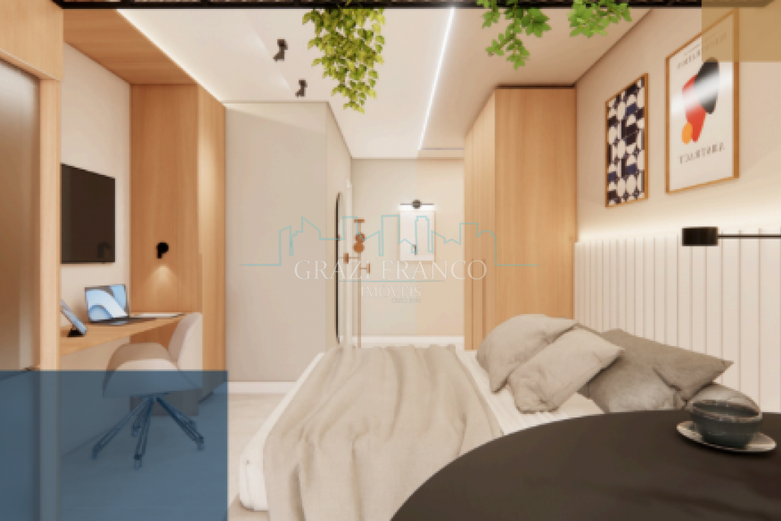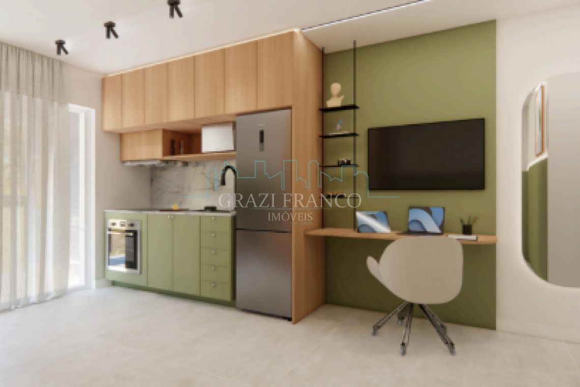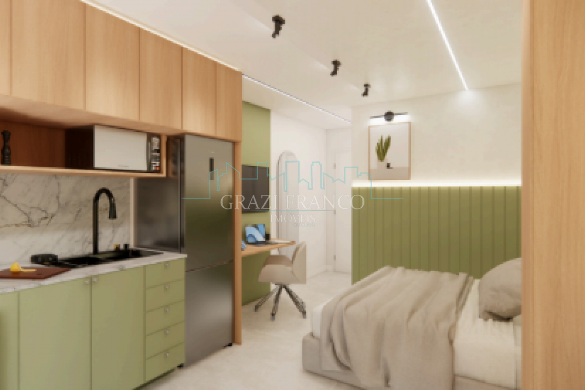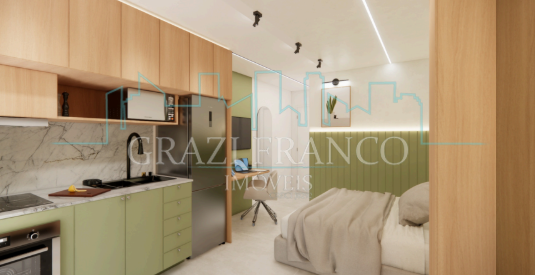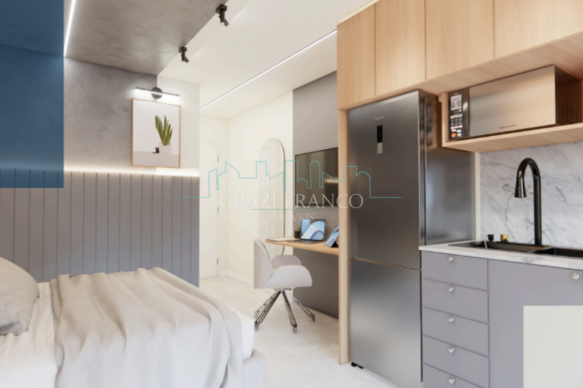 - Studios compactos e funcionais, com metragens que variam de 28,00m² a 42,00m²;