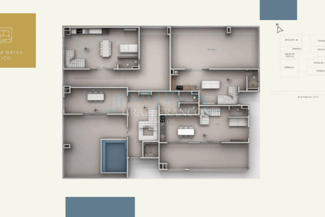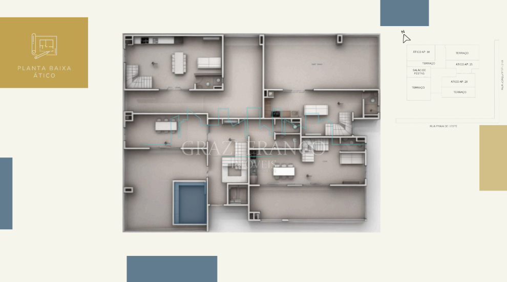 - Apartamentos duplex com área externa, com metragens que variam de 145,00m² a 166,00m²;