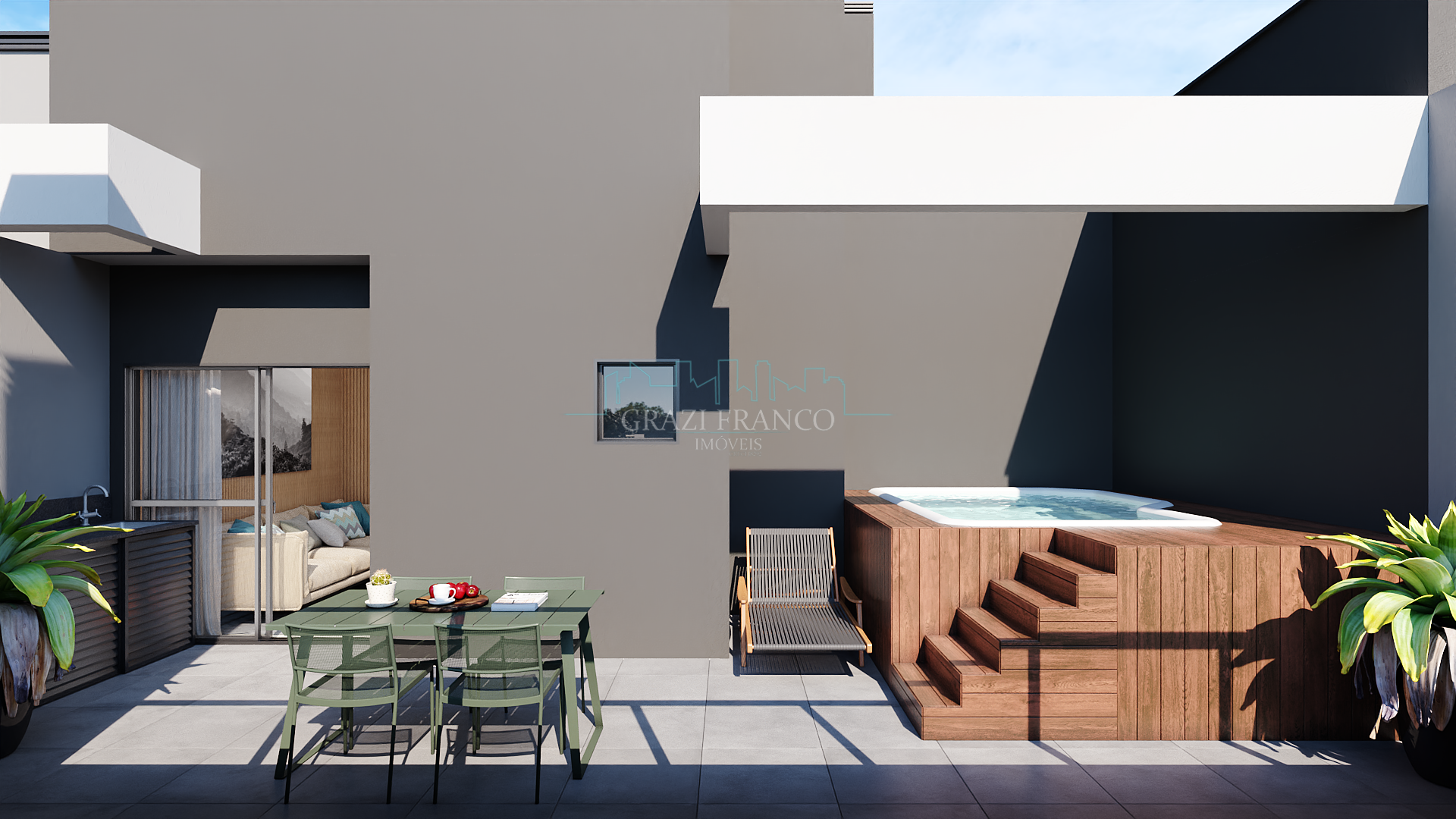 -Terraço descoberto com piscina