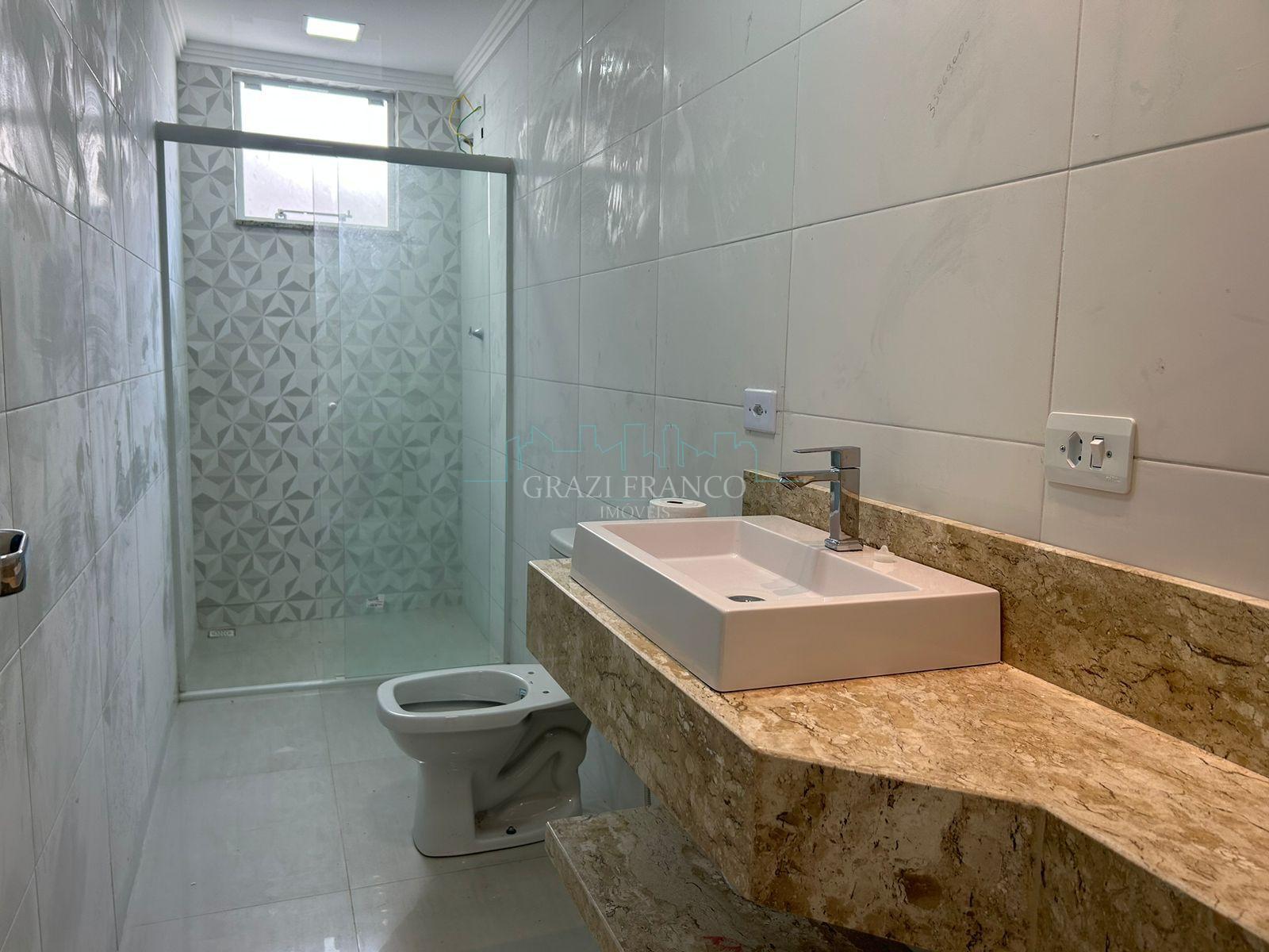 - Bwc com bancada em pedra Travertino e pia sobreposta