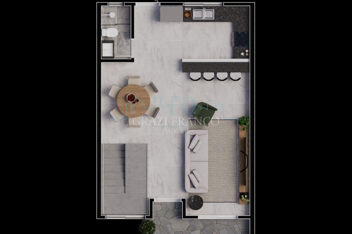 - Sala de estar e de jantar integradas com a cozinha